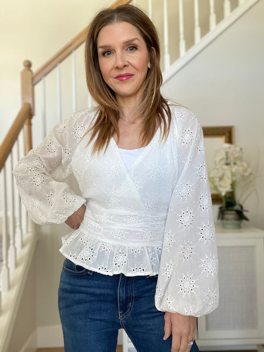 White Eyelet Crossover Top