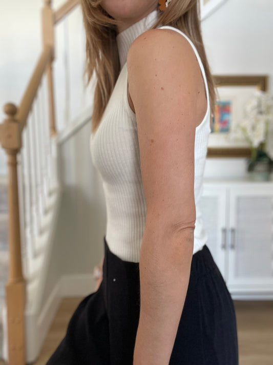 Mock Neck Ribbed Tank - Cream