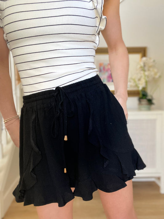 Black Linen Ruffle Shorts
